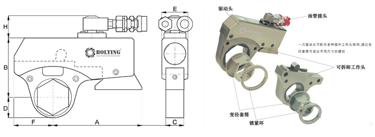 產(chǎn)品的選取依據(jù)螺栓鎖緊和拆松扭矩而定,扭矩值會因螺栓直徑和強度等級不同而有所變化。