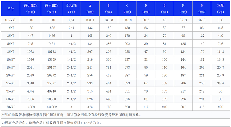 在驅(qū)動液壓扳手型號中,5MXT是除了3MXT之外最常用的液壓驅(qū)動板手型號之一。那么,5MXT型號液壓扭力扳手的扭矩范圍是多少?適用的螺栓規(guī)格大概多大?具體型號參數(shù)如何呢?