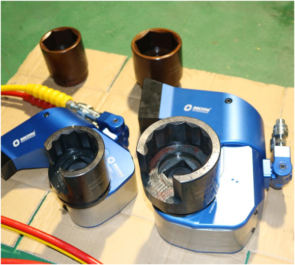 業(yè)主方之前從武漢購(gòu)買過(guò)一套德國(guó)品牌液壓扳手,使用情況并不理想,由于液壓泵和開口液壓扳手較為笨重,故不考慮。