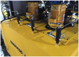 (2)   同時(shí)可以通過外部管路連接后用其中一臺電動泵為四個(gè)液壓油缸供油;