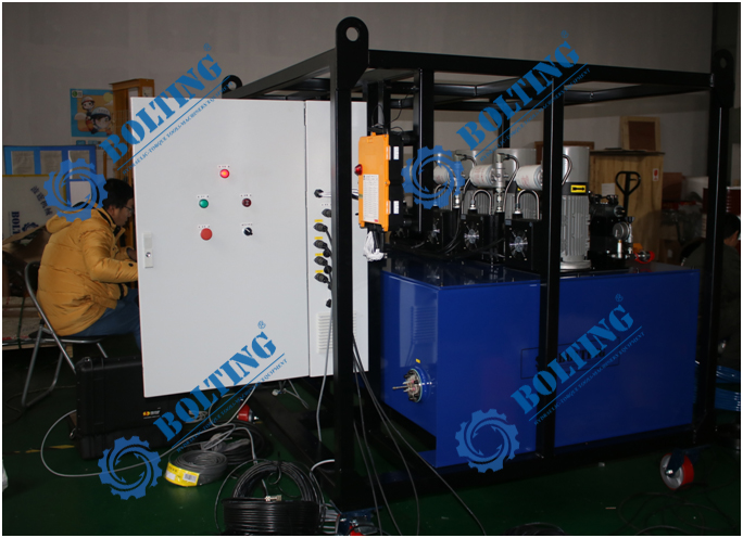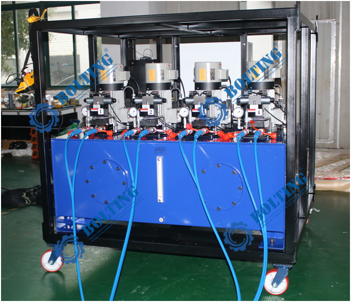 BOLTING博霆1600噸PLC控制全自動同步頂升系統(tǒng)(數(shù)控智能油缸同步控制系統(tǒng))實(shí)驗(yàn)中